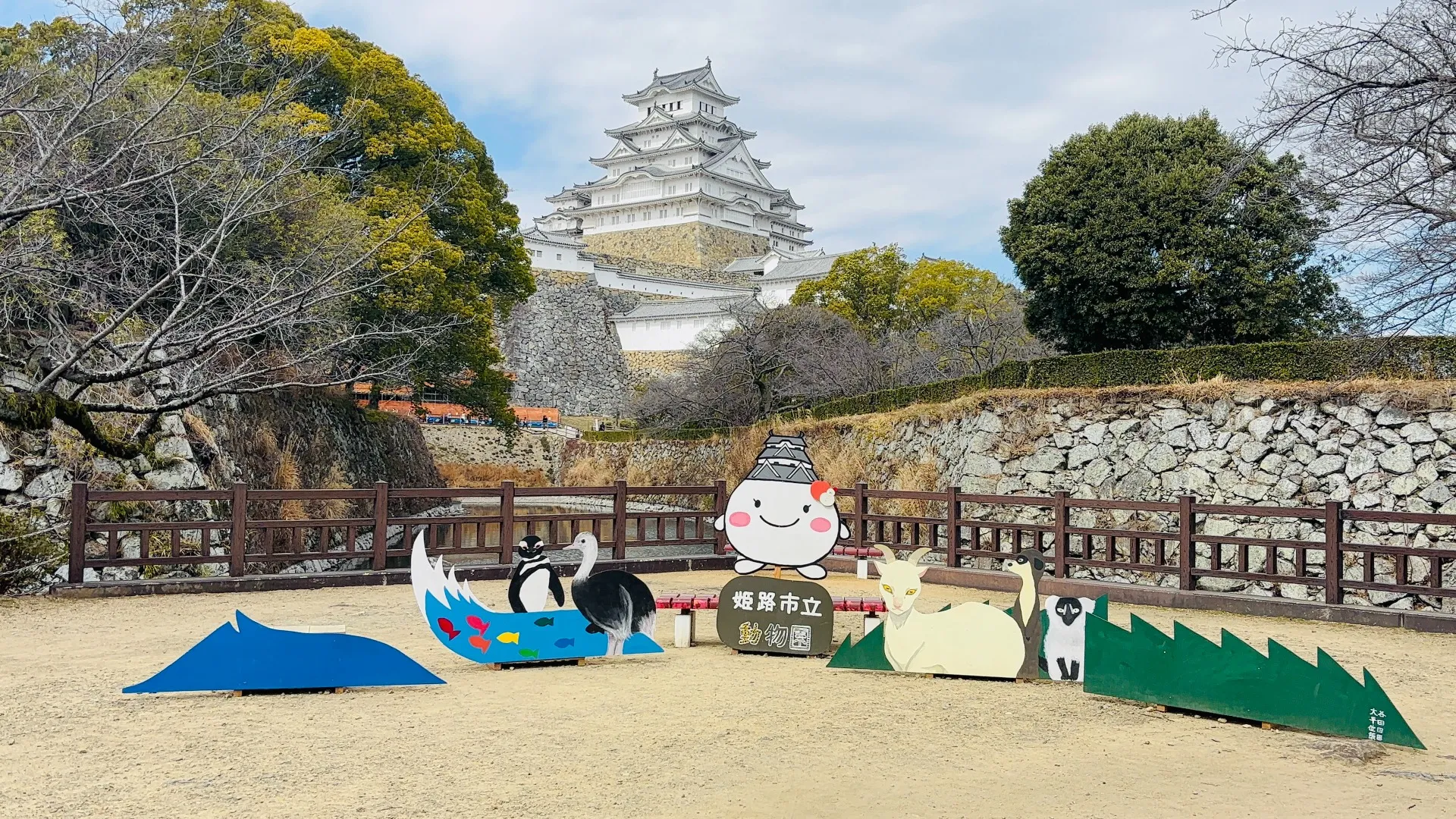 周辺にある姫路動物園では、姫路城をバックに撮影できるスポットもあります。