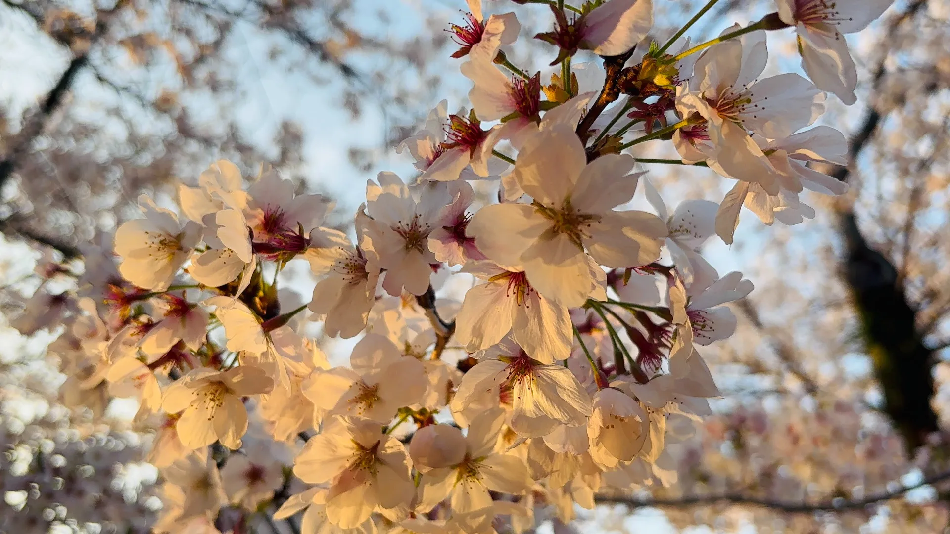 夕方に姫路城付近へ少しお散歩をしてみたら、夕陽に照らされた桜が撮れました🌇🌸
