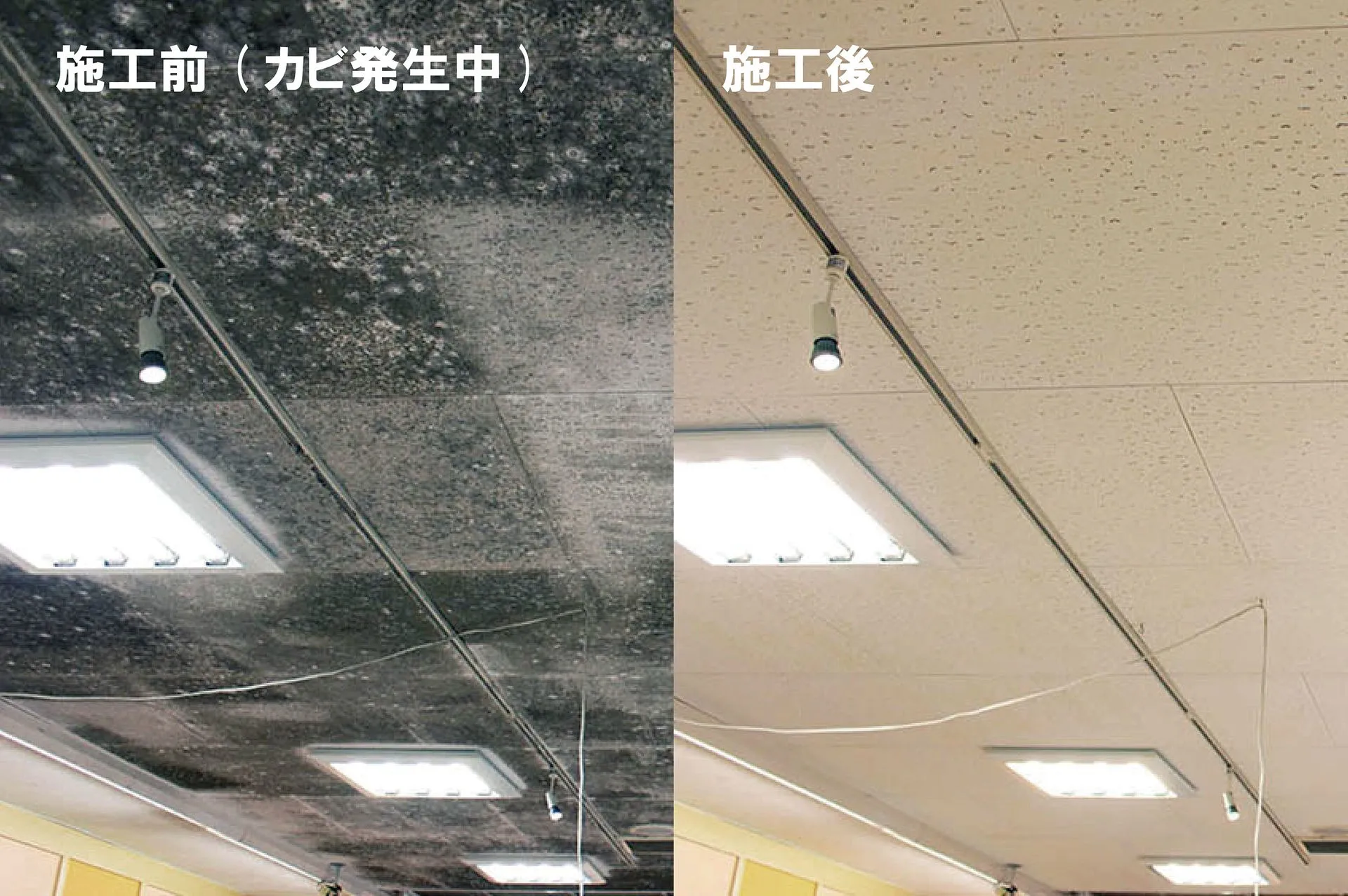 弊社は、ショッピングモールやファッションビル、スーパー、ドラッグストア、ホームセンター、インターネットカフェなどの商業施設から、病院や福祉施設などの医療施設、工場、博物館、教育施設、一般のご家庭まで、あらゆる場所のカビに関して、皆様の悩みを解決する事業を展開しています。カビを除去するだけでなく、施工完了時から2~5年の保証付きで再発の不安を解消しています。