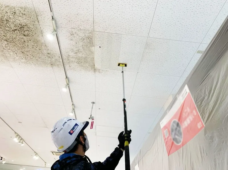 商業施設や医療機関のほか、工場や公共施設、宿泊施設、住宅など、あらゆる建物のカビ取り施工に対応しております。高所の天井や広い壁面、バックヤードなど、手の届きにくい場所も熟練のスタッフがスムーズに作業を行います。安全性の高い薬剤を採用し、使用中の施設でも通常営業を続けながら施工できるケースも多くあります。保証制度によって施工後も安心が続く仕組みを整えています。