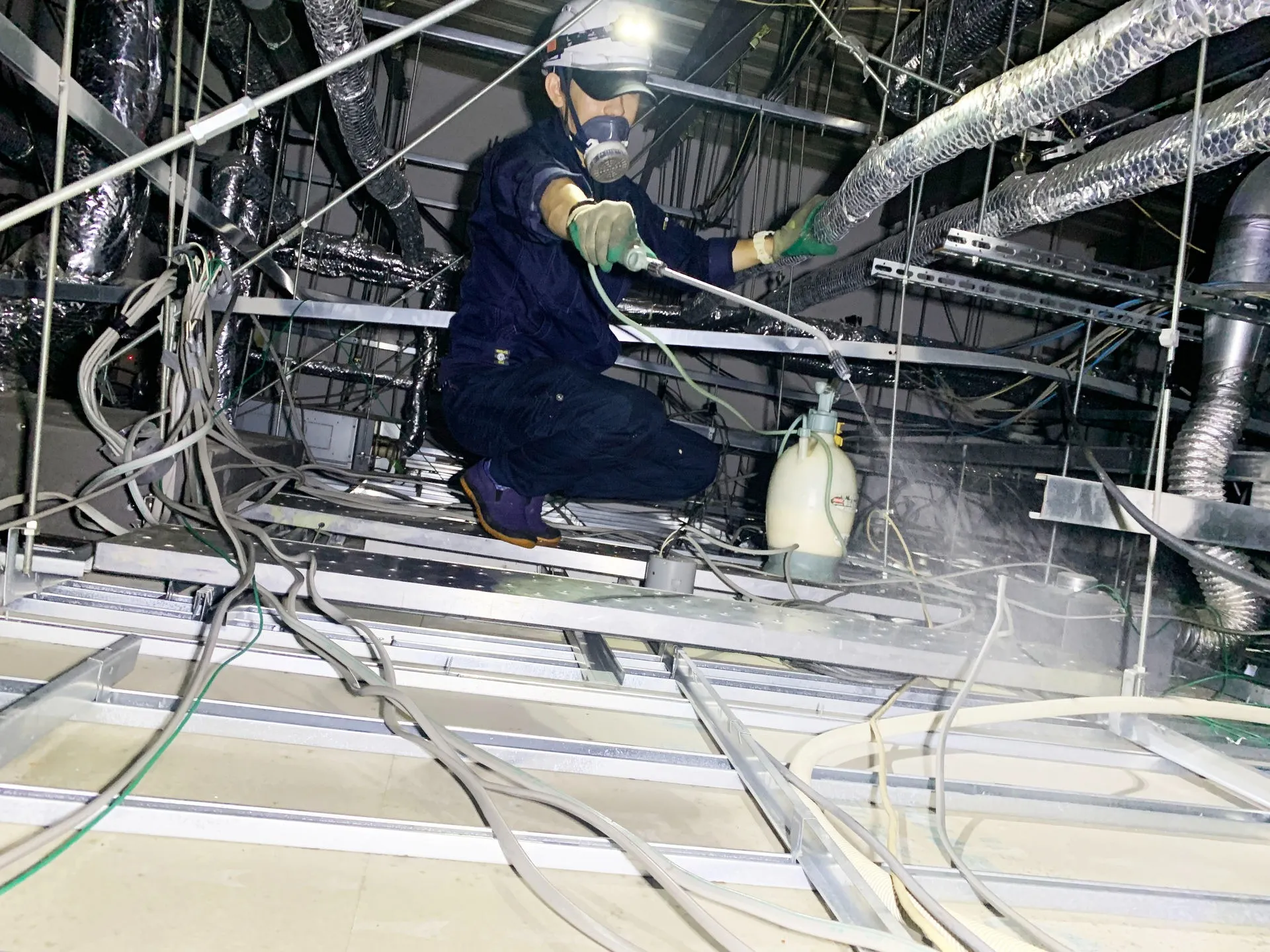 菌の種類に応じて薬剤を変える必要がない独自の方式を採用しており、迅速な施工が可能です。従来の方法よりも作業時間が短く、コストを抑えられるため、店舗を休業させたくないお客様にも選ばれています。高所作業や広範囲の施工にも対応でき、現場の管理や安全対策も徹底いたします。事前調査から施工完了まで、自社スタッフが責任を持って対応するため、精度の高い作業が実現します。