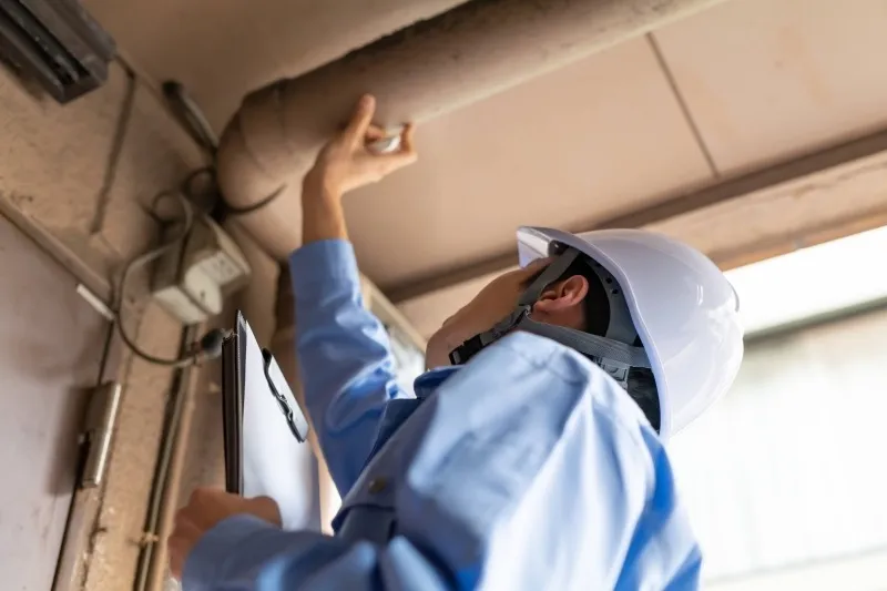 気密性の高い建物では、通気性が悪くなりがちです。防煙垂壁や防火シャッターなどの設備で、湿気が溜まりやすくなることもあります。湿気が溜まると結露が付きやすくなります。